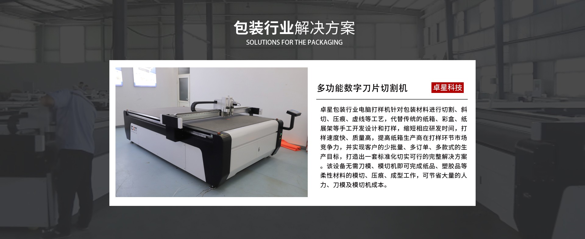 卓星包裝行業電腦打樣機針對包裝材料進行切割、斜切、壓痕、虛線等工藝,代替傳統的紙箱、彩盒、紙展架等手工開發設計和打樣,縮短相應研發時間,打樣速度快、質量高,提高紙箱生產商在打樣環節市場競爭力,并實現客戶的少批量、多訂單、多款式的生產目標,打造出一套標準化切實可行的完整解決方案。該設備無需刀模、模切機即可完成紙品、塑膠品等柔性材料的模切、壓痕、成型工作,可節省大量的人力、刀模及模切機成本。
